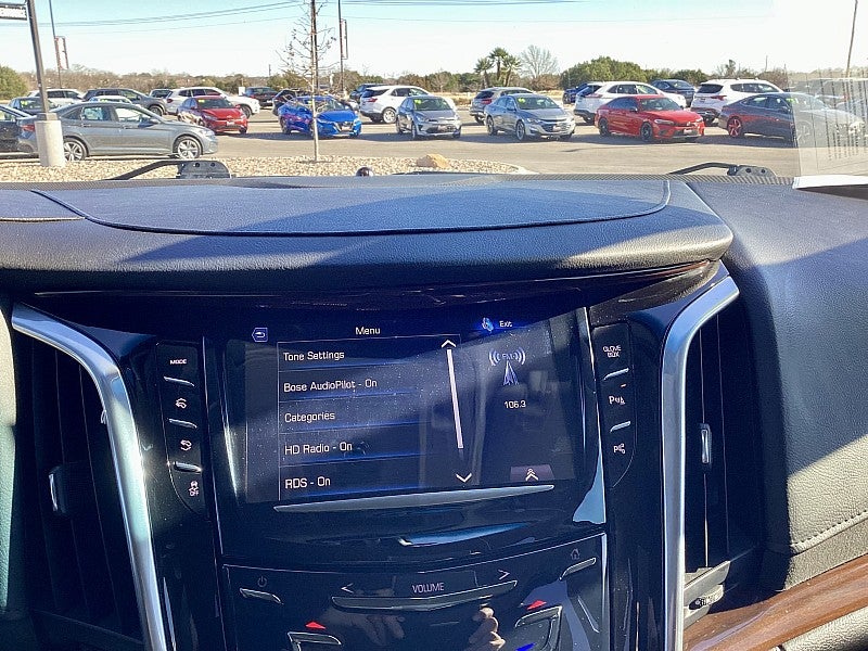 - Cadillac user experience with embedded navigation AM/FM stereo with 8" diagonal color information display featuring touch response, haptic feedback, gesture recognition, Natural Voice Recognition, Phone Integration for Apple CarPlay and Android Auto capability for compatible phone, Connected Apps and Teen Driver. Five USB ports, including one in the articulating storage door/bin and auxiliary audio port
