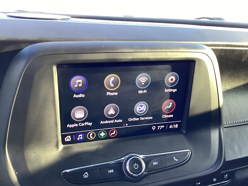 - Audio system, Chevrolet Infotainment 3 system, 7" diagonal color touchscreen, AM/FM stereo. Additional features for compatible phones include: Bluetooth® audio streaming for 2 active devices, voice command pass-through to phone, Apple CarPlay and Android Auto capable.