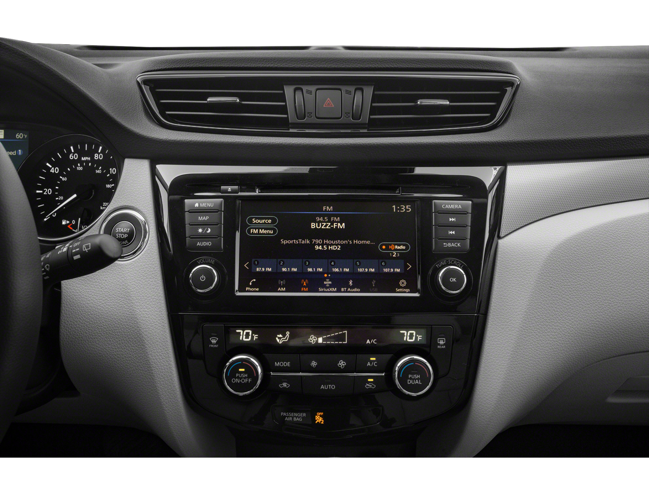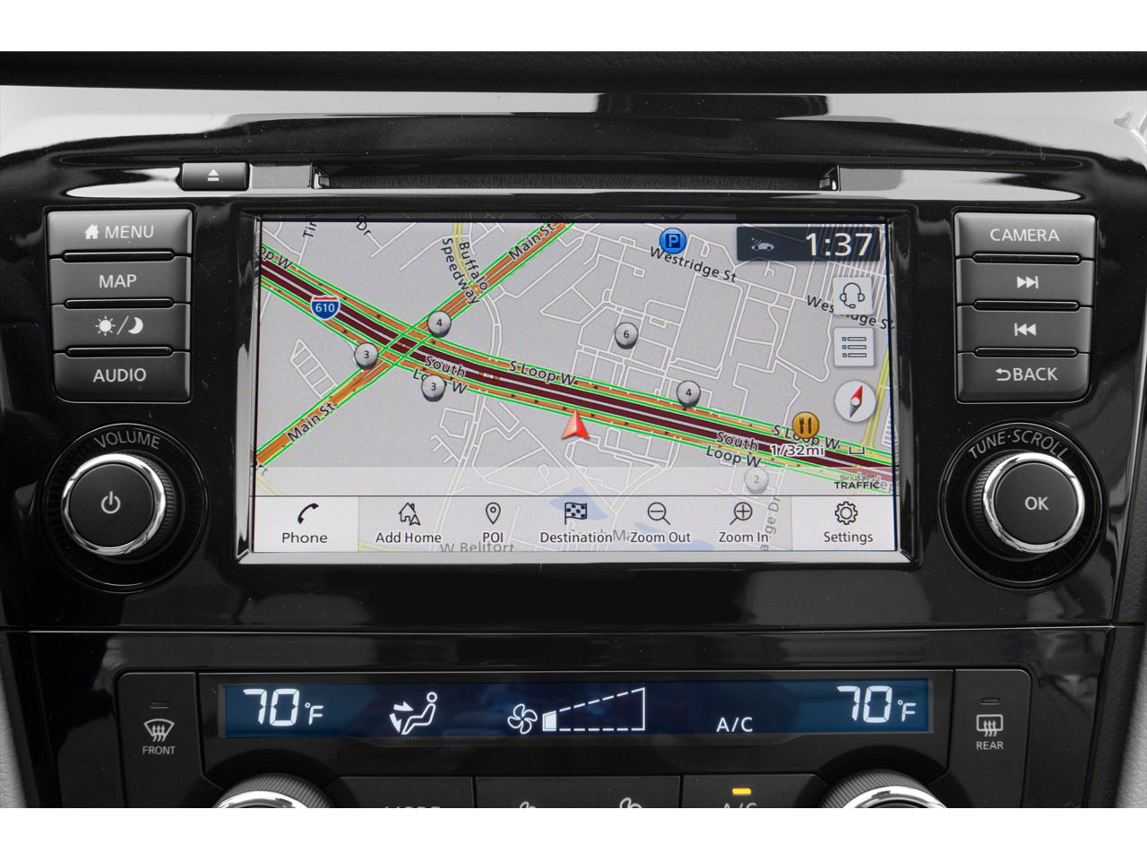 - Radio: AM/FM NissanConnect w/Navigation -inc: Nissan door-to-door navigation, SiriusXM Traffic, SiriusXM Travel Link (weather, fuel prices, movie listings, stock info, sports and parking), 7" color display w/multi-touch control, Apple CarPlay, Android Auto, SiriusXM satellite radio, Bluetooth® hands-free phone system, streaming audio via Bluetooth® and hands-free text messaging assistant